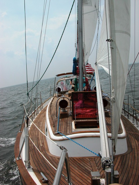 This is the stained deck, with new lines on the mast
